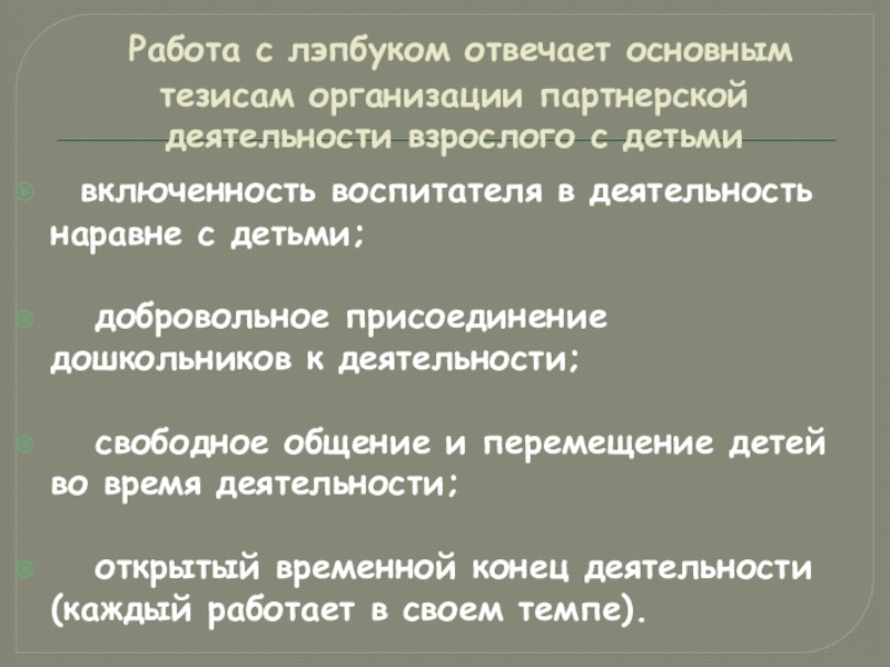 добровольное присоединение дошкольников к деятельности;