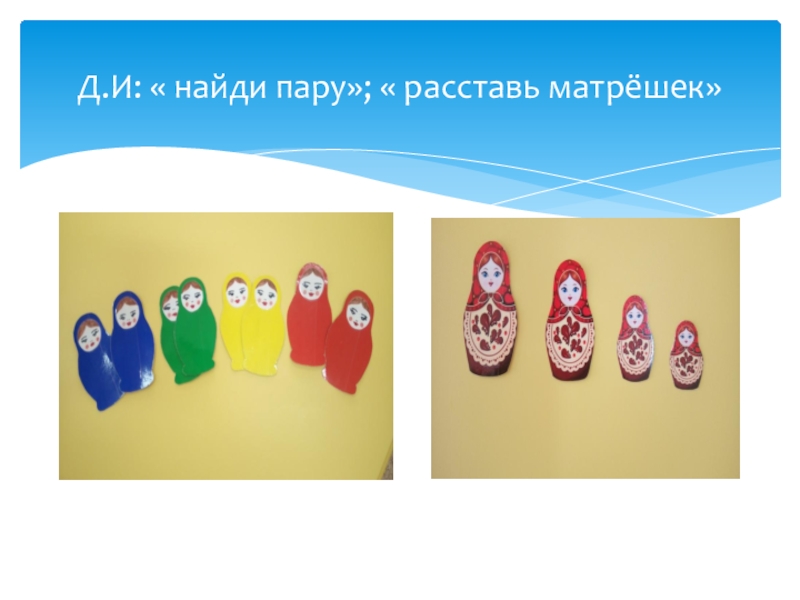 Слайд 5Д.И: « найди пару»; « расставь матрёшек»