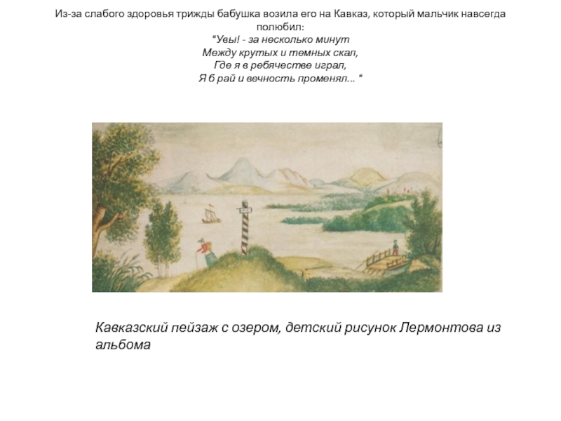 Кавказский пейзаж с озером, детский рисунок Лермонтова из альбома