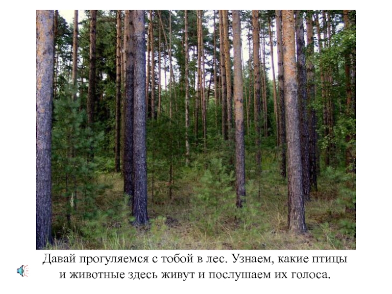 Давай прогуляемся с тобой в лес. Узнаем, какие птицыи животные здесь живут и послушаем их голоса.