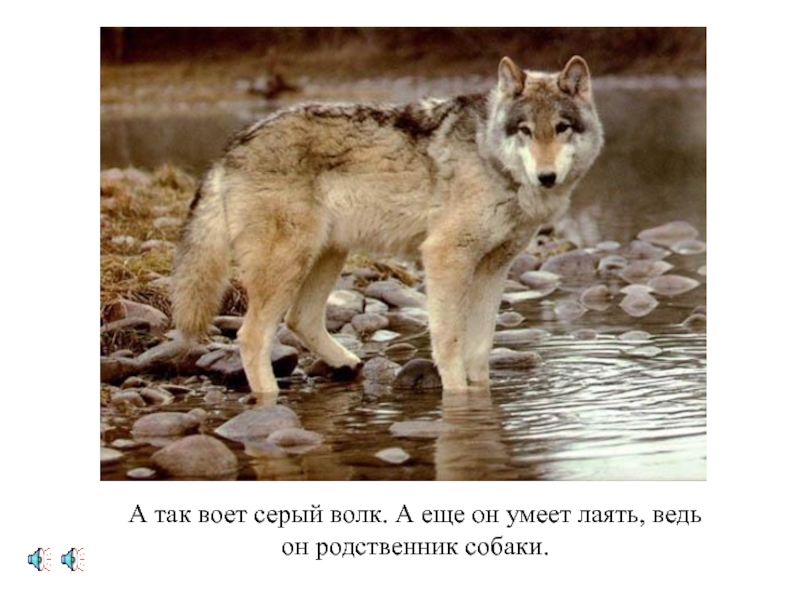 Слайд 12А так воет серый волк. А еще он умеет лаять, ведь