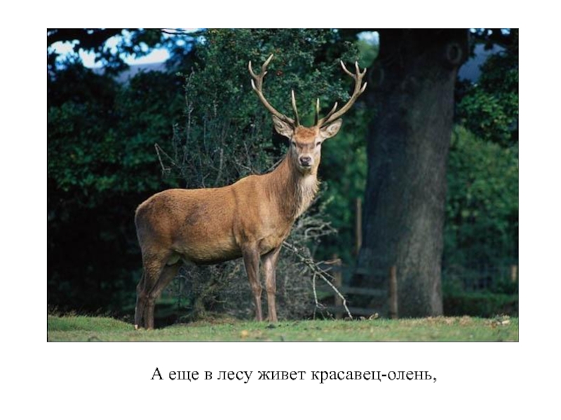 Слайд 16А еще в лесу живет красавец-олень,