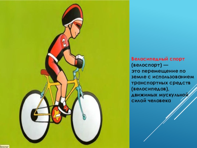 Велосипедный спорт  (велоспорт) —это перемещение по земле с использованием транспортных средств (велосипедов), движимых мускульной силой человека