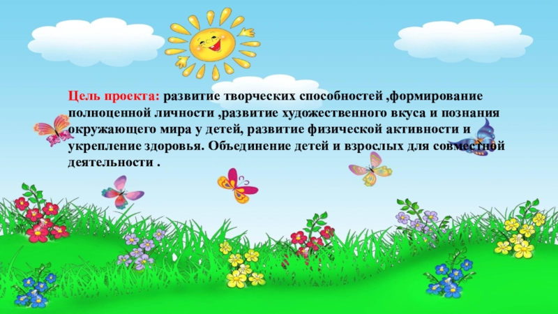 Слайд 4Цель проекта: развитие творческих способностей ,формирование полноценной личности ,развитие художественного вкуса