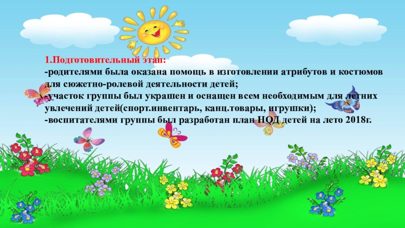 сада предусматривается максимальное пребывание детей на открытом воздухе. Очень важно, чтобы жизнь детей в этот период была содержательной и интересной.