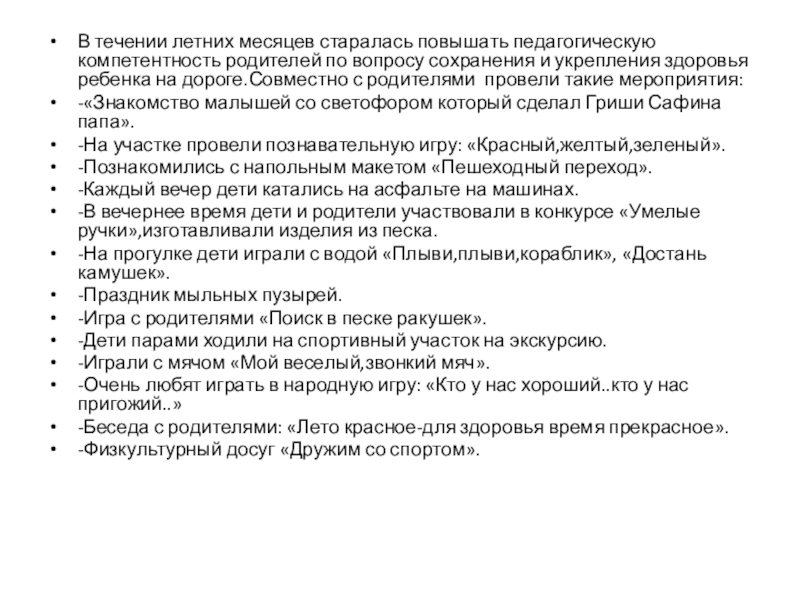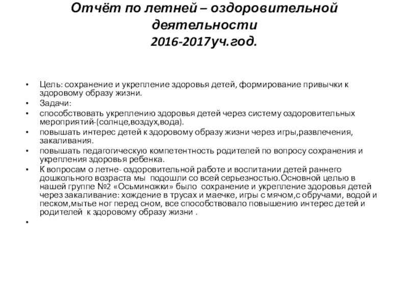 летней-оздоровительной деятельности