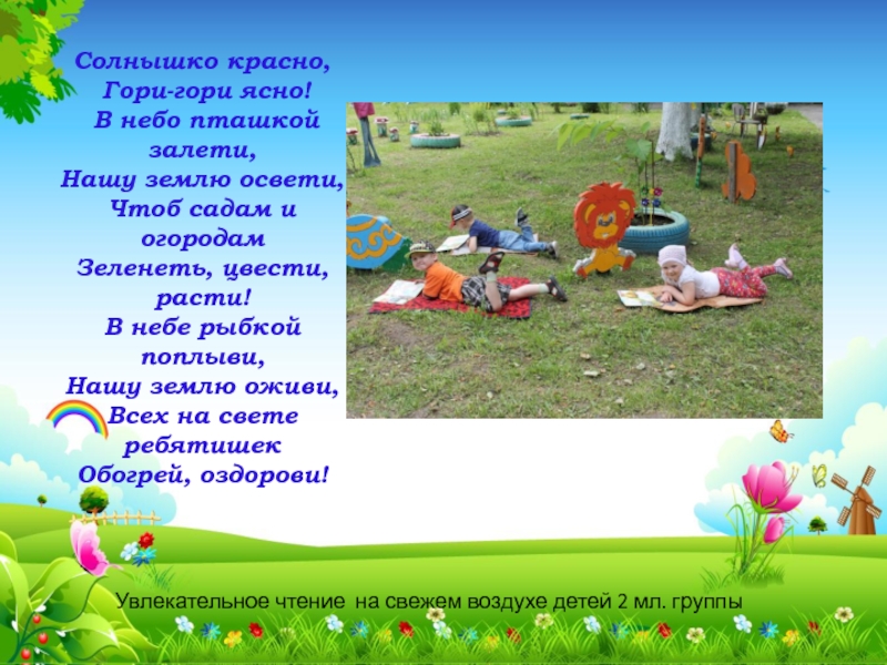 Увлекательное чтение на свежем воздухе детей 2 мл. группы