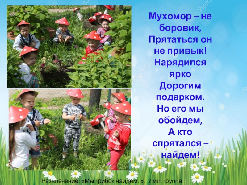 Развлечение: «Мы грибок найдем..». 2 мл. группа
