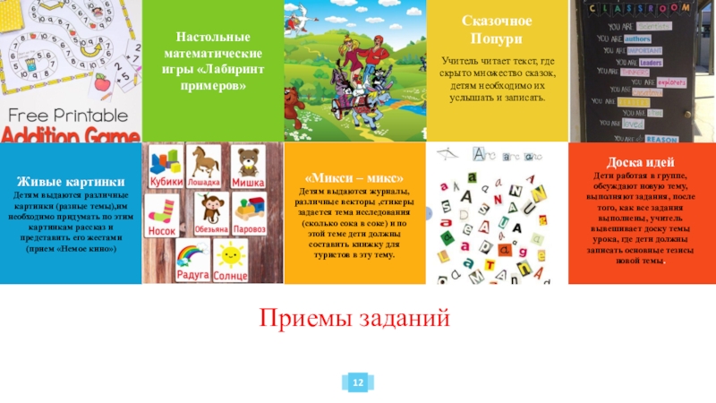 Учитель читает текст, где скрыто множество сказок, детям необходимо их услышать и записать.