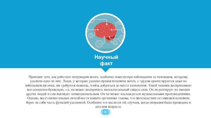 Интересный факт: Интересным фактом является то, что правое полушарие мозга контролирует левую половину тела, направляя туда сигналы в виде электрических импульсов, а левое полушарие – правую часть человеческого тела.
