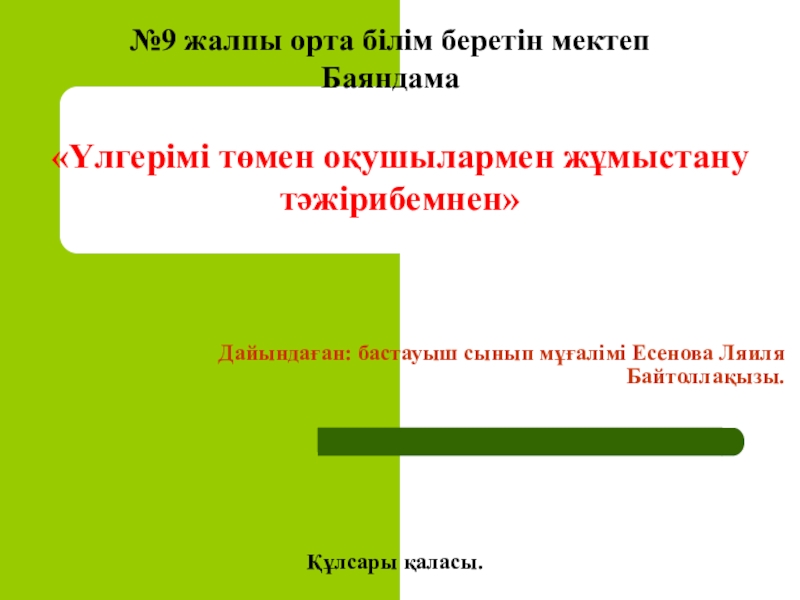 «Үлгерімі төмен оқушылармен жұмыстану тәжірибемнен»