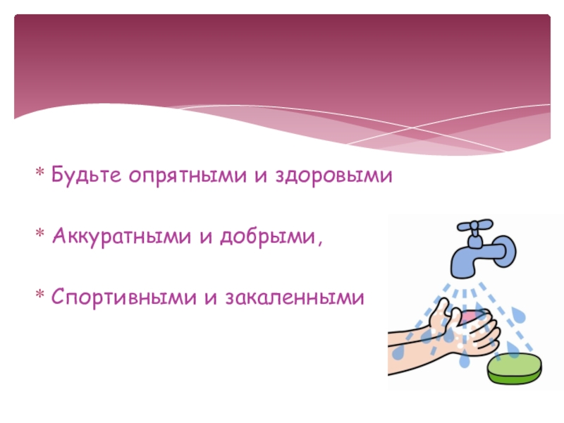 Будьте опрятными и здоровымиАккуратными и добрыми,Спортивными и закаленными