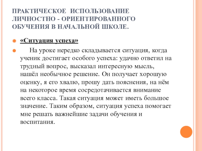 Слайд 7ПРАКТИЧЕСКОЕ ИСПОЛЬЗОВАНИЕ ЛИЧНОСТНО - ОРИЕНТИРОВАННОГО ОБУЧЕНИЯ В НАЧАЛЬНОЙ ШКОЛЕ.