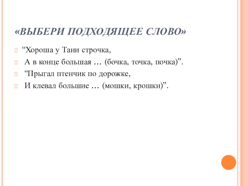Слайд 17«ВЫБЕРИ ПОДХОДЯЩЕЕ СЛОВО»