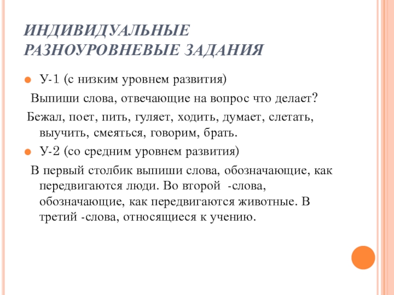 Слайд 14ИНДИВИДУАЛЬНЫЕ РАЗНОУРОВНЕВЫЕ ЗАДАНИЯ