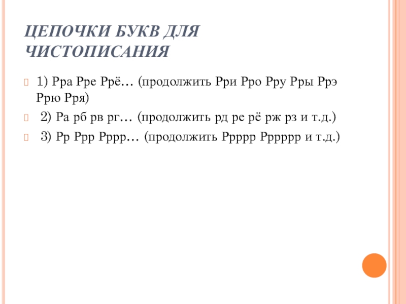 Слайд 13ЦЕПОЧКИ БУКВ ДЛЯ ЧИСТОПИСАНИЯ