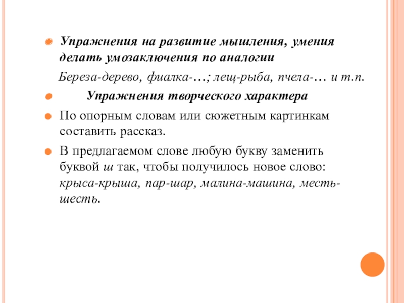Упражнения на развитие мышления, умения делать умозаключения по аналогии