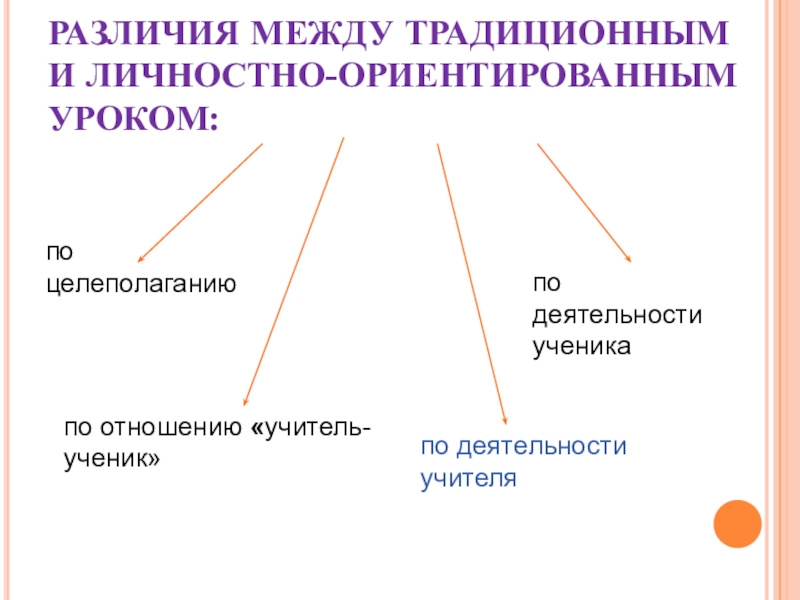 Слайд 4РАЗЛИЧИЯ МЕЖДУ ТРАДИЦИОННЫМ И ЛИЧНОСТНО-ОРИЕНТИРОВАННЫМ УРОКОМ: