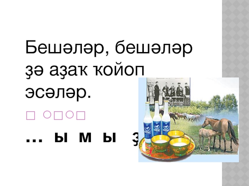 Бешәләр, бешәләр ҙә аҙаҡ ҡойоп эсәләр. □ ○□○□… ы м ы  ҙҡ