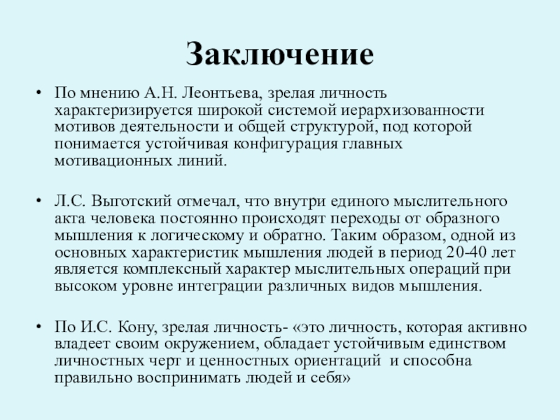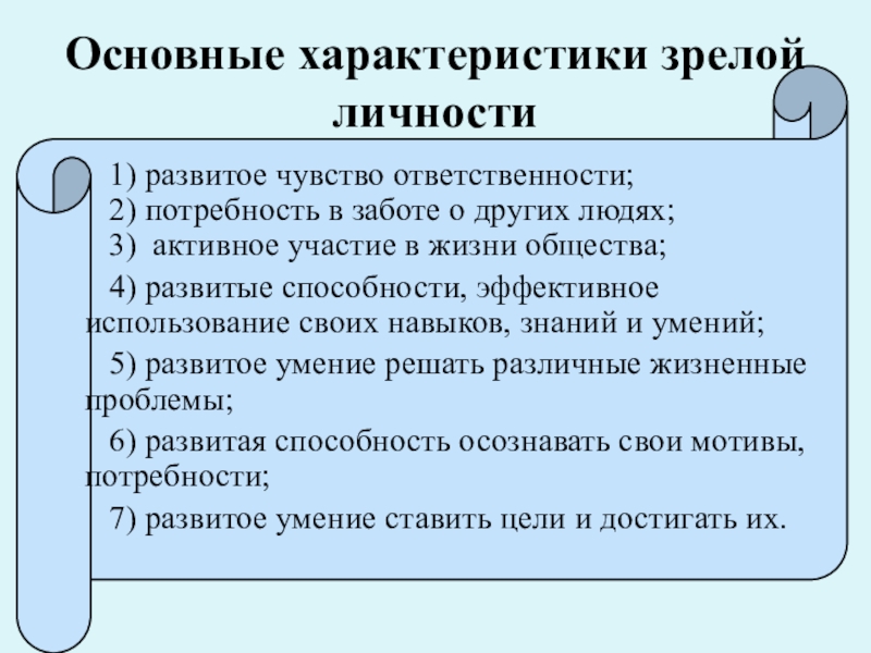 зрелость — ступень в развитии человека, когда он становится способным полноценно выполнять свои гражданские, супружеские и родительские обязанности и социально, и индивидуально продуктивно проявлять себя в качестве деятеля в той или другой конкретной области труда.