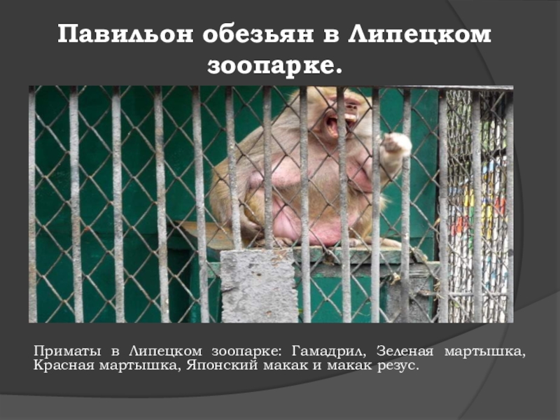 Приматы в Липецком зоопарке: Гамадрил, Зеленая мартышка,
