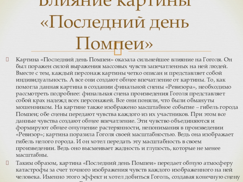 Влияние картины «Последний день Помпеи»