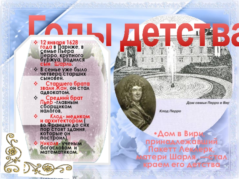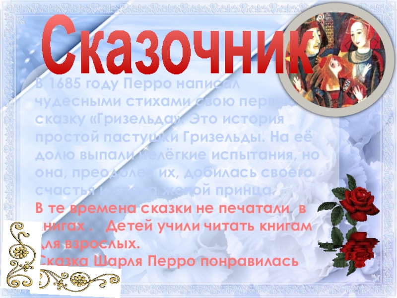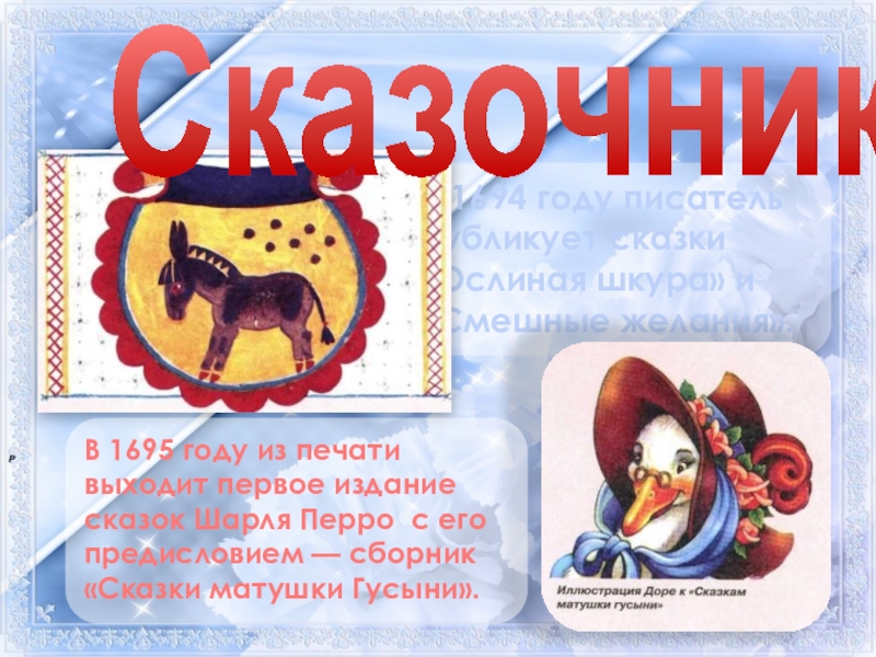 В 1695 году из печати выходит первое издание сказок Шарля Перро с его предисловием — сборник «Сказки матушки Гусыни».