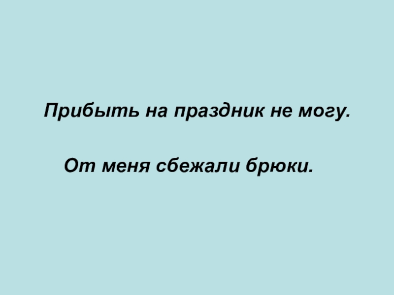 Прибыть на праздник не могу.				От меня сбежали брюки.