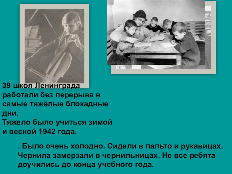 . Было очень холодно. Сидели в пальто и рукавицах. Чернила замерзали в чернильницах. Не все ребята доучились до конца учебного года.