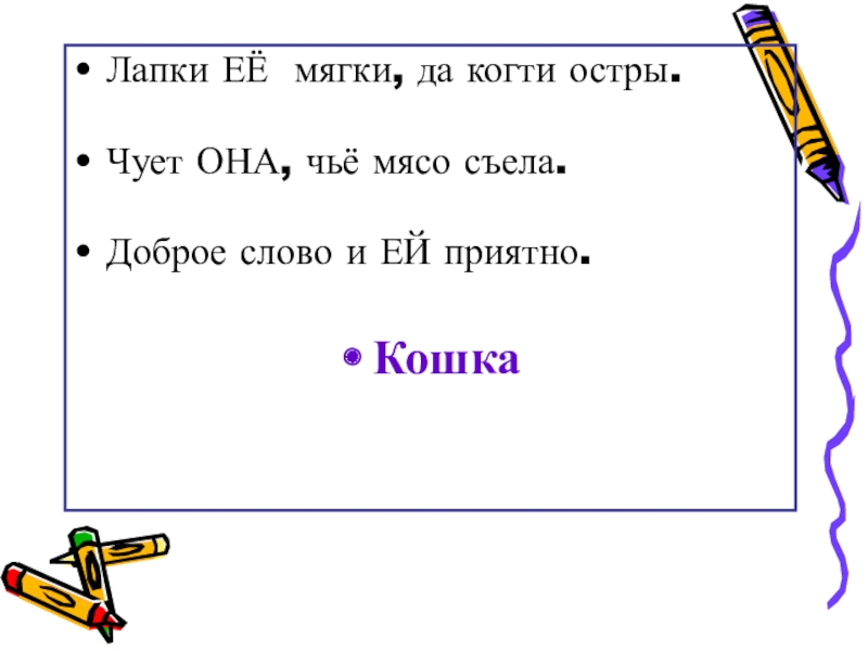 Лапки ЕЁ мягки, да когти остры. Чует ОНА, чьё мясо съела. Доброе слово и ЕЙ приятно. Кошка