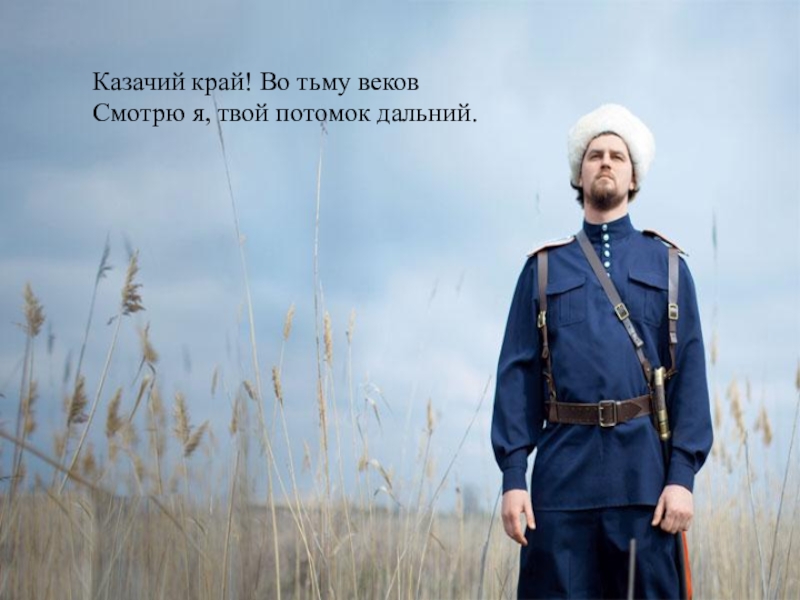 Казачий край! Во тьму веков Смотрю я, твой потомок дальний.