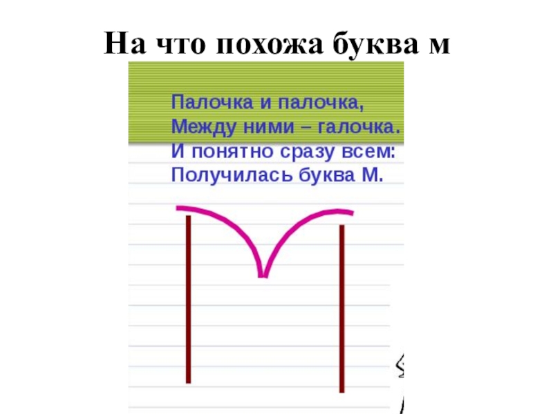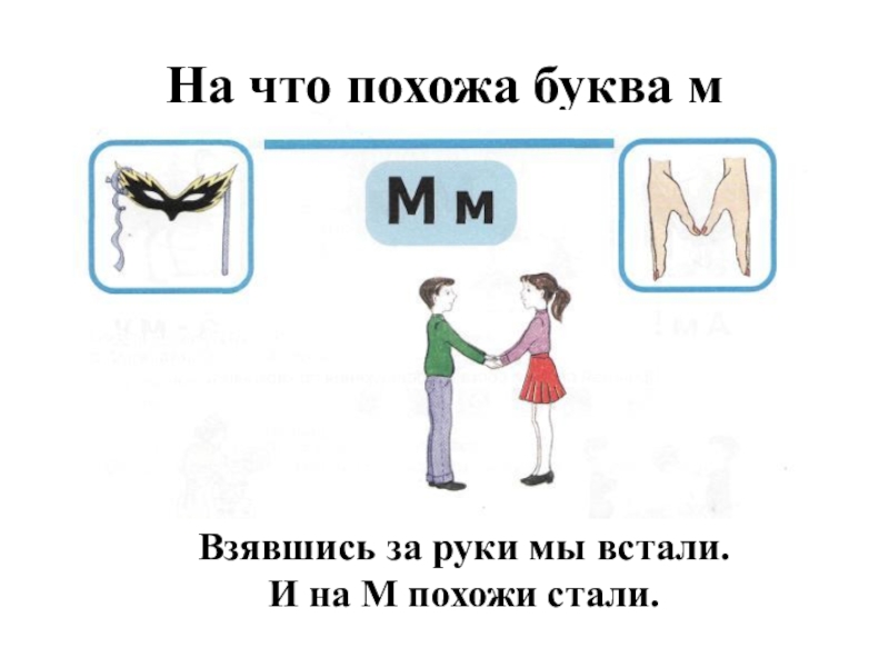 На что похожа буква мВзявшись за руки мы встали.И на М похожи стали.