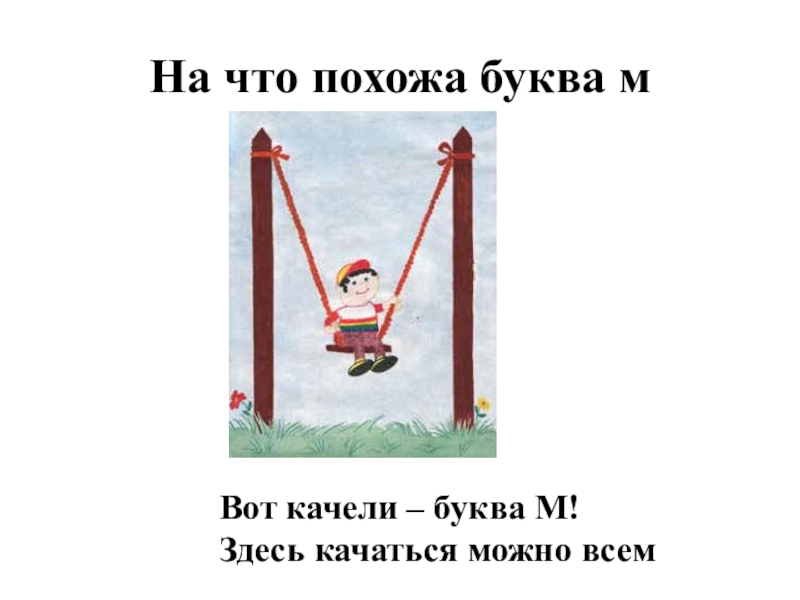 На что похожа буква мВот качели – буква М!Здесь качаться можно всем