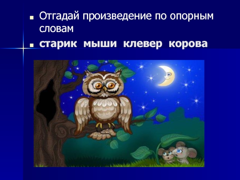 Отгадай произведение по опорным словамстарик мыши клевер корова