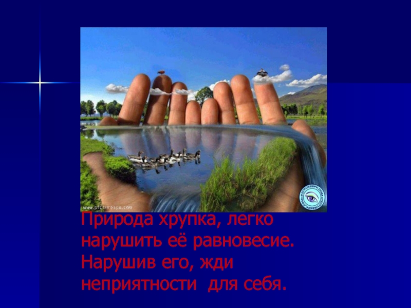 Природа хрупка, легко нарушить её равновесие. Нарушив его, жди неприятности для себя.