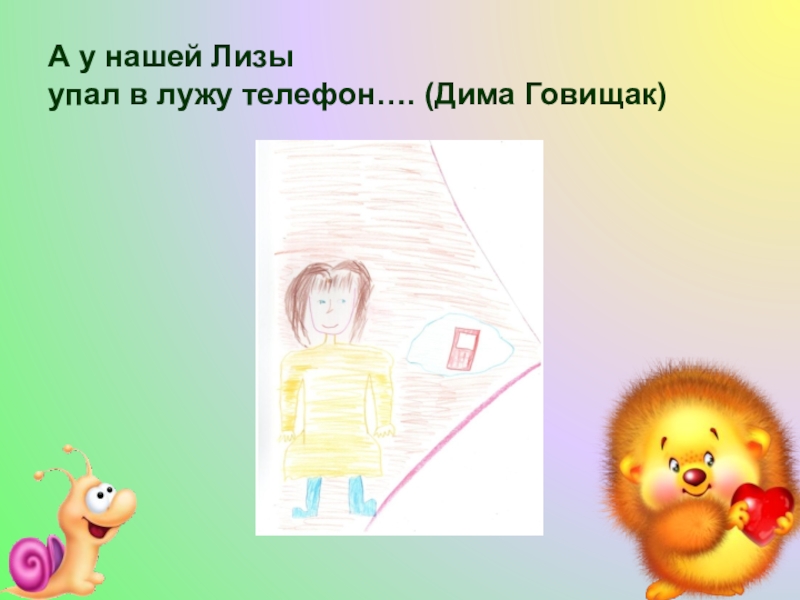Слайд 9А у нашей Лизы упал в лужу телефон…. (Дима Говищак)