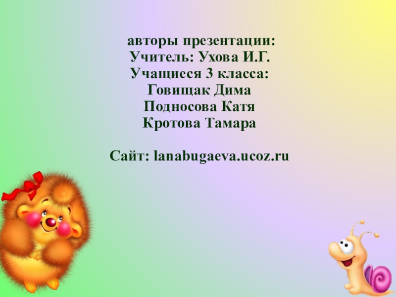 авторы презентации:Учитель: Ухова И.Г.Учащиеся 3 класса:Говищак ДимаПодносова Катя Кротова ТамараСайт: lanabugaeva.ucoz.ru