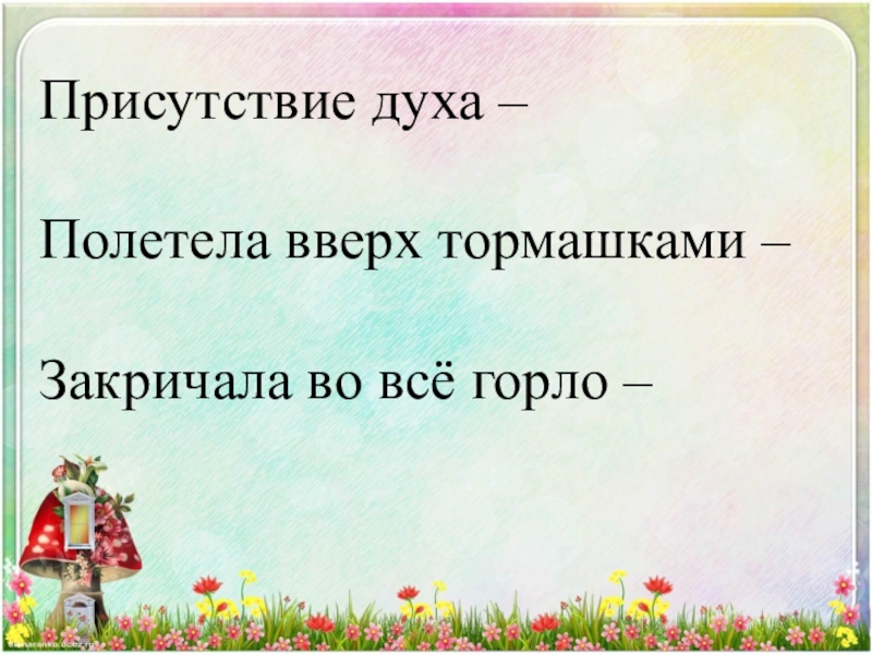 Присутствие духа –Полетела вверх тормашками – Закричала во всё горло –