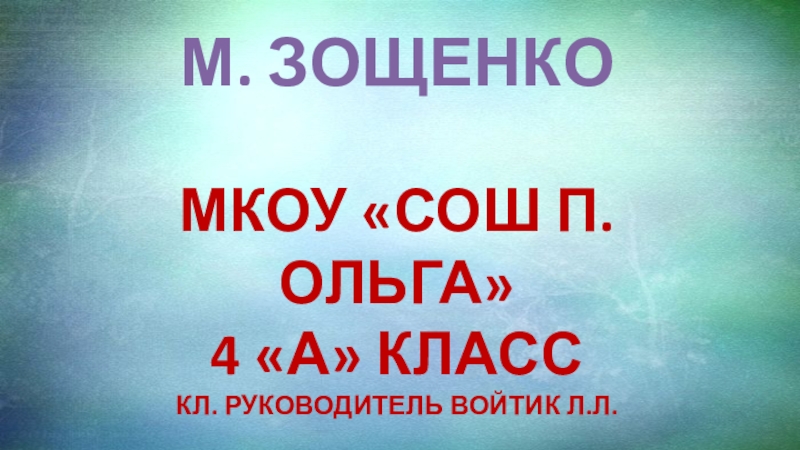 М. ЗощенкоМКОУ «СОШ п. Ольга»4 «А» классКл. Руководитель Войтик Л.Л.