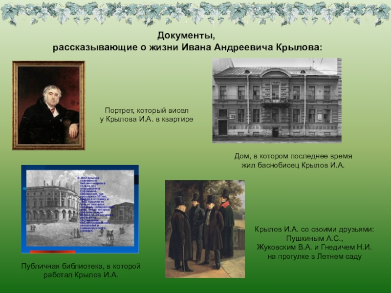 Крылов И.А. со своими друзьями: Пушкиным А.С.,