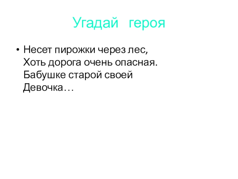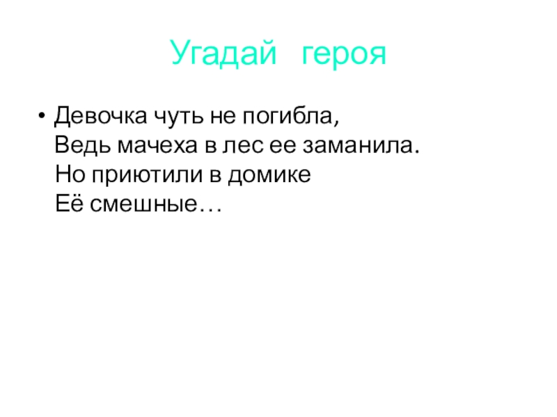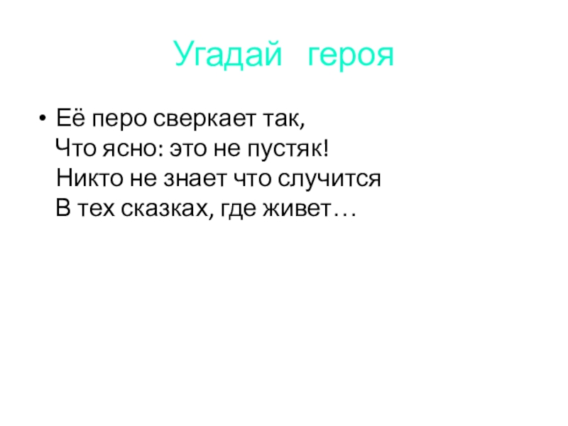 Слайд 42 конкурс «Разминка» Угадайте сказочного героя