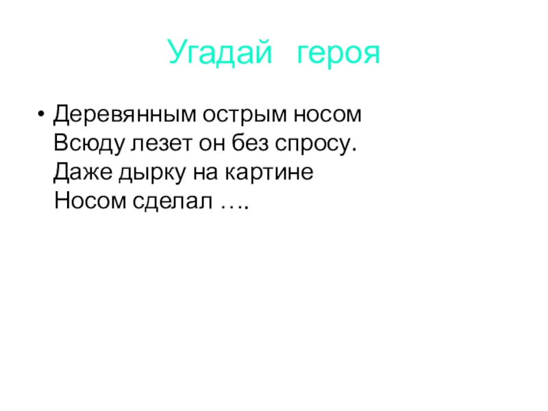 Всюду лезет он без спросу. Даже дырку на картине Носом сделал ….