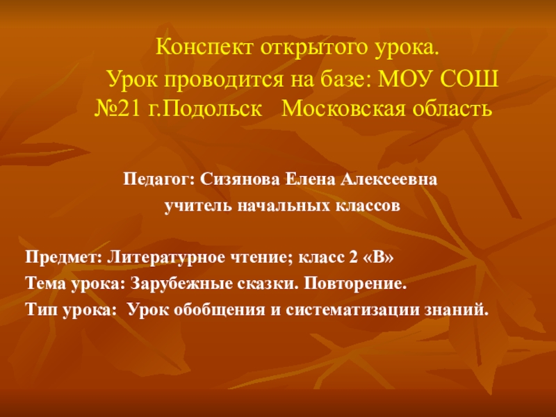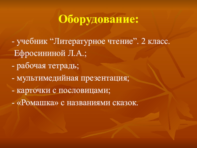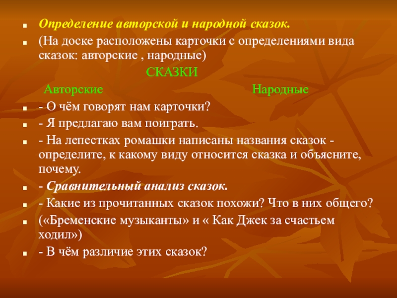 и авторскими сказками; учить выделять национальные особенности сказок и их героев; формировать читательские умения (определять жанр и тему произведения, идею произведения; работать с текстом); формировать навыки правильного быстрого и выразительного чтения.