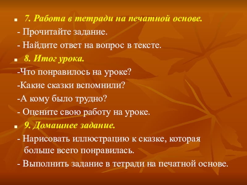 - Нарисовать иллюстрацию к сказке, которая больше всего понравилась.