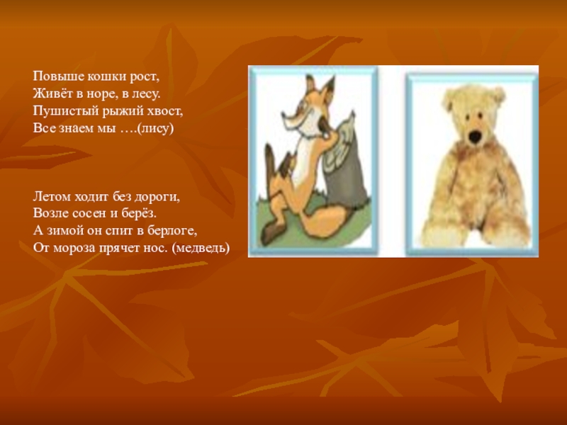 - Из какой сказки эти герои? ( «Лис Миккель и медведь Бамсе» -Норвежская сказка )