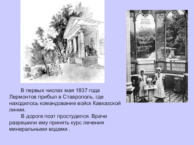 числах мая 1837 года Лермонтов прибыл в Ставрополь, где находилось командование войск Кавказской линии.