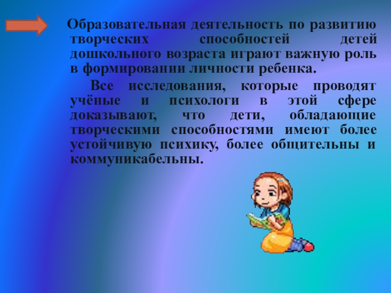 Слайд 3 Образовательная деятельность по развитию творческих способностей детей дошкольного