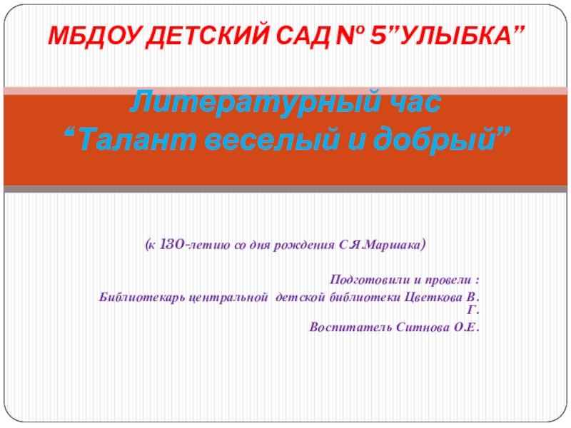 МБДОУ ДЕТСКИЙ САД № 5”УЛЫБКА”