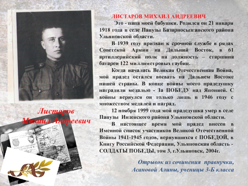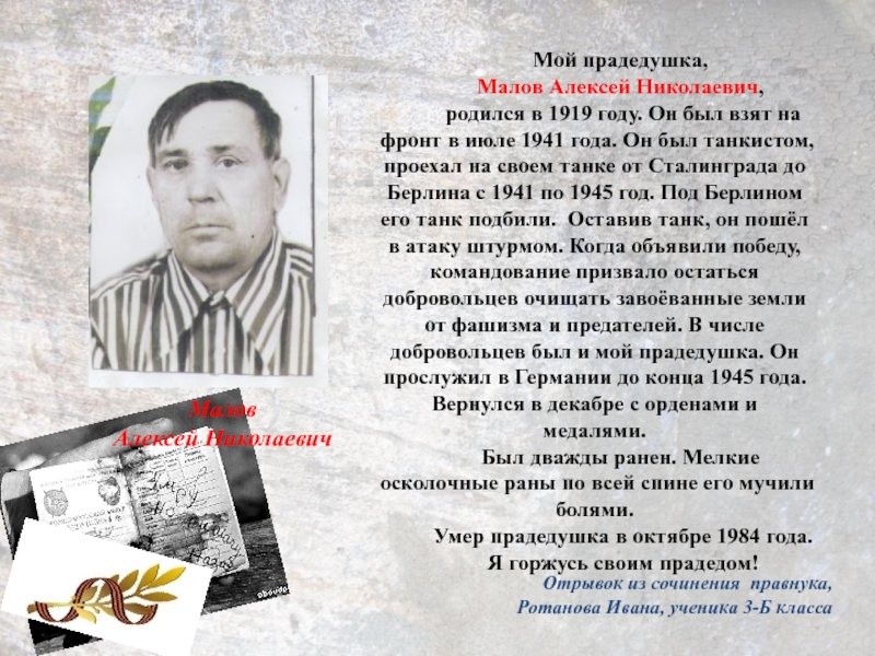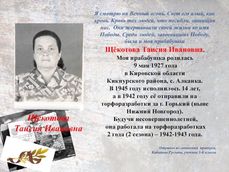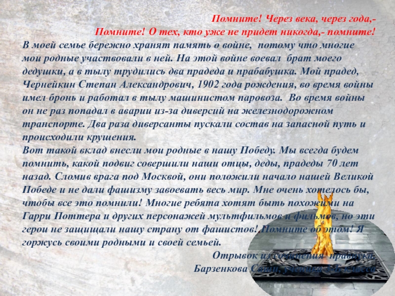 Я горжусь, что люди, совершившие трудовой и боевой подвиг, жили рядом с нашими бабушками и дедушками, ведь они их родители !