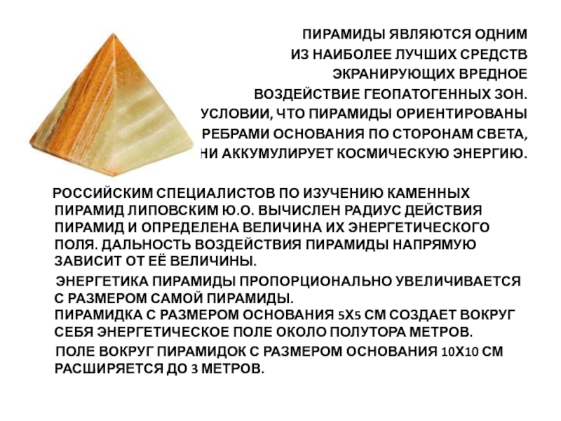 Слайд 8ОЗДОРАВЛИВАЮЩИЙ ЭФФЕКТ ПИРАМИД